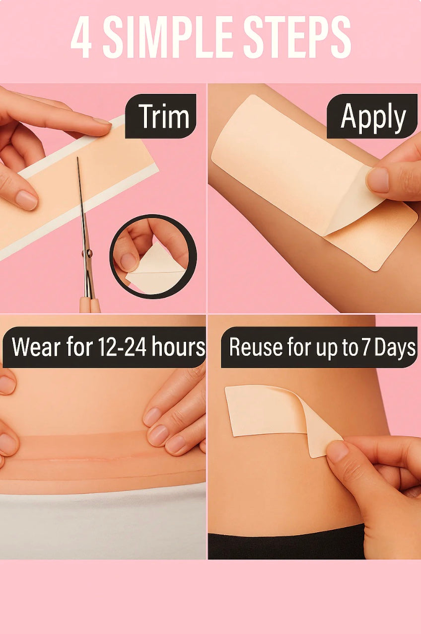 - Gently apply the tape directly onto the skin.